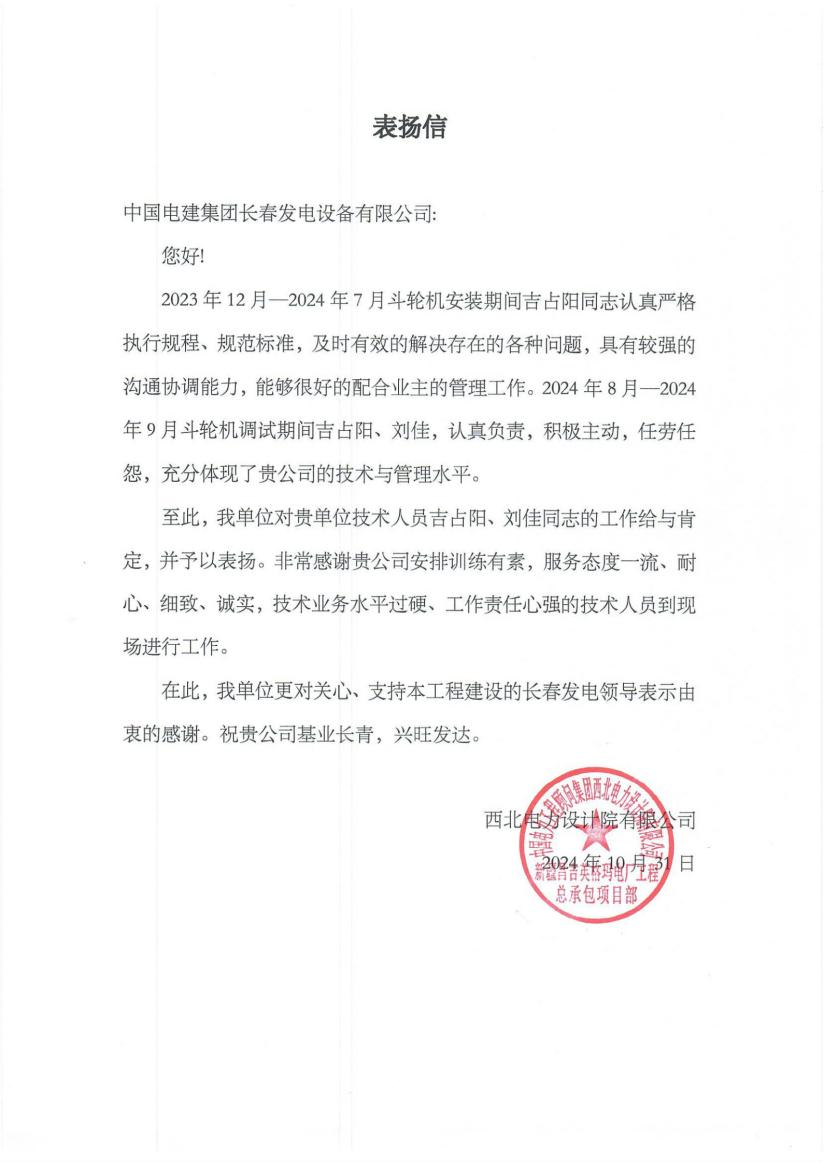 長春設備公司榮獲中國電建首批...
